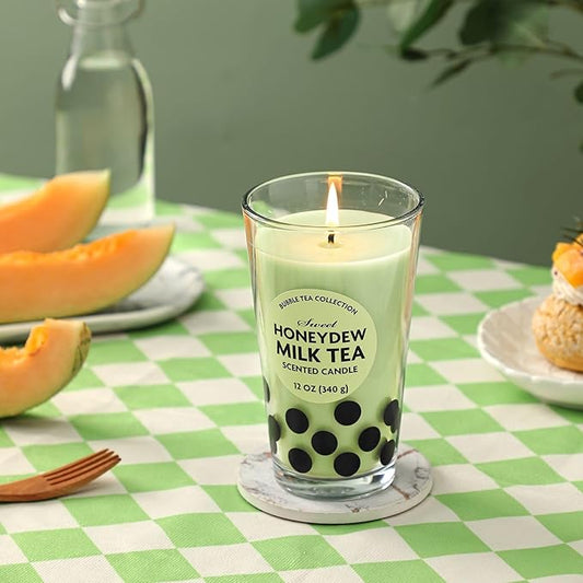 12oz Candle - Honeydew Melon Boba Tea Scented