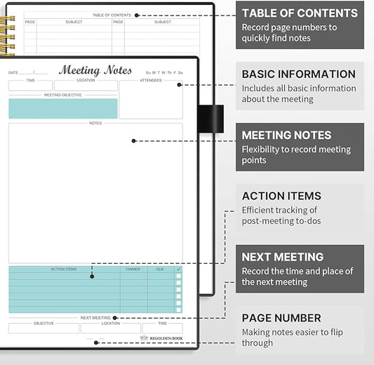 Regolden-Book Meeting Notebook (7”x10”), Black