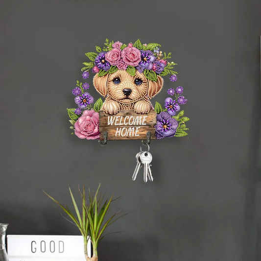 DIY Diamond Painting with Key Holder Hooks - Puppy