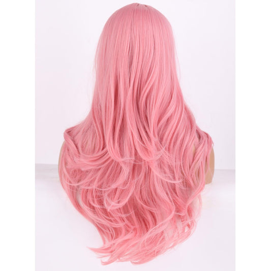Pink Wig Long Curly Wavy Middle Part- 24 inch