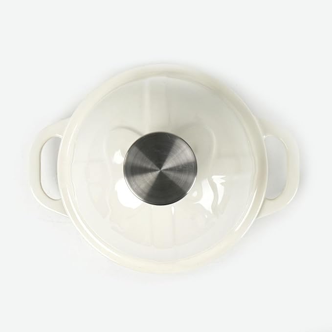 - From Kitchen to Table: Made from cast iron with an attractive Stainless steel knob. Cast iron delivers superior and even heats distribution. Dual handles make it easy to move bakeware in and out of the oven. They also make it easy to serve directly on the table. Rich enameled finish offers elegant kitchen to table serving.