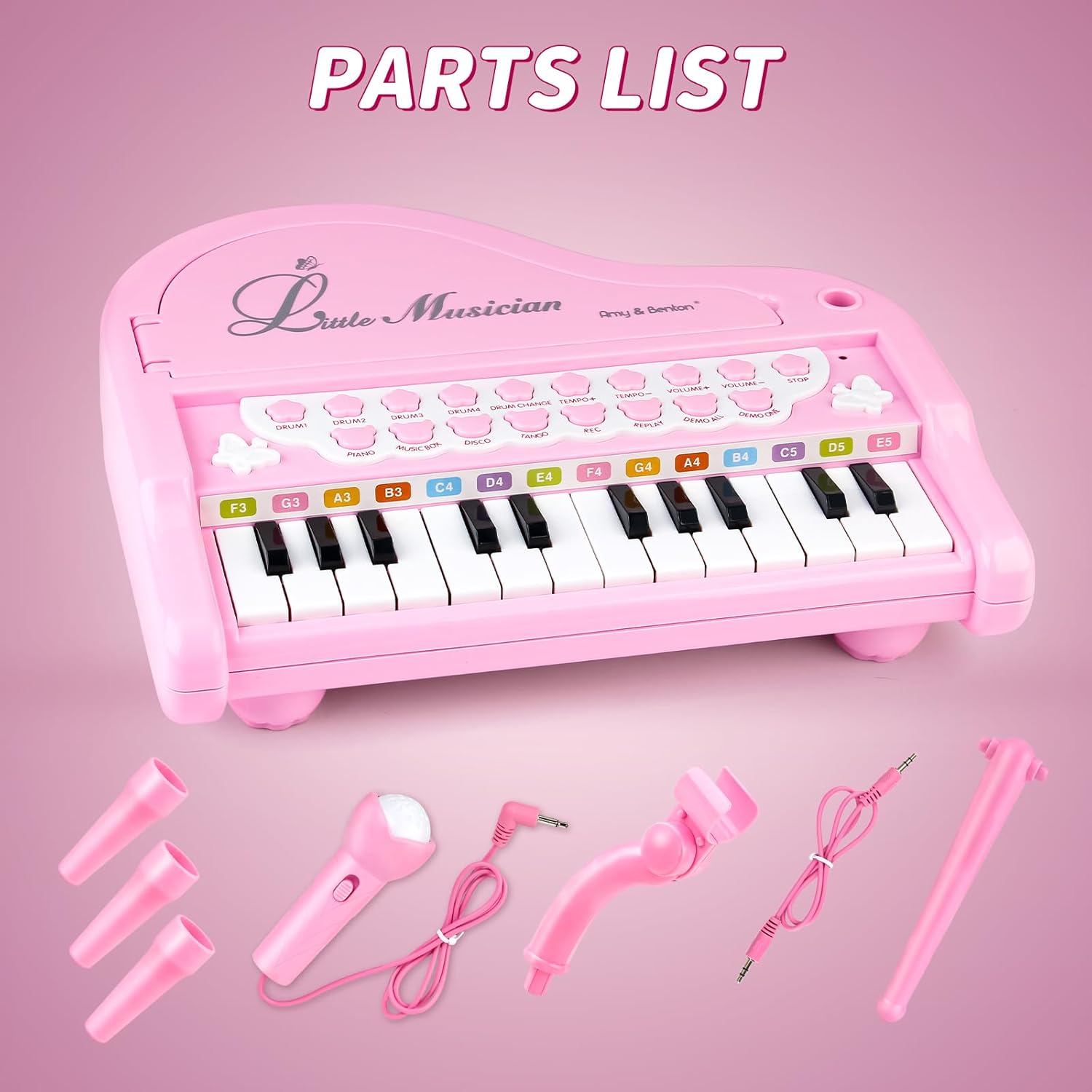 - 【Lovely & Elegant Design】: This pink toddler piano toy keyboard is a great gift for kids' birthdays and perfect for family time and parties. Its mini size of 10.8*10.8*8.85 in and weight of 28.85 ounces make it easy to carry and store.