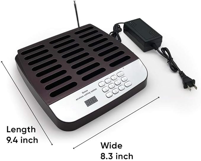 - Includes: 24xPagers, 1xTransmitter/Charging base, 1xPower adapter, 1x User Manual