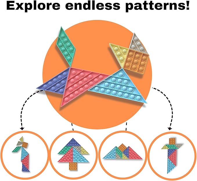 - BPA FREE AND FOOD GRADE: The silicone material used for our tangram puzzle pop it puzzle toy sensory fidget toys under 10 dollars is BPA-Free, and have been tested to ensure safety for all family members.