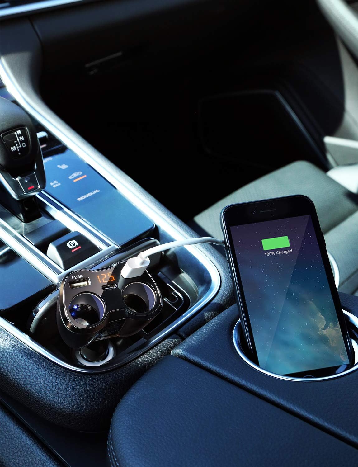 - 【WIRELESS CONSTRUCTION & COMPACT DESIGN】Plug this car outlet adapter into your car cigarette lighter with no more extra wires.All-in one design with flexible rotation, makes your car neater ,brings you more convenience activities in car.