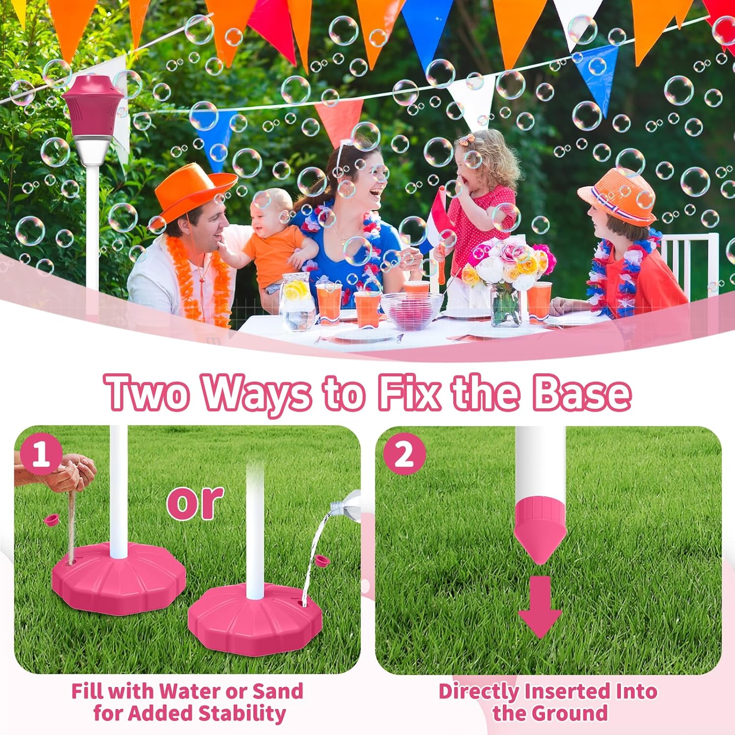- tay secure with two setup options: fill the base with water or sand for weight, or insert the stand directly into the ground. This bubble machine stays secure while running, even on uneven outdoor surfaces.