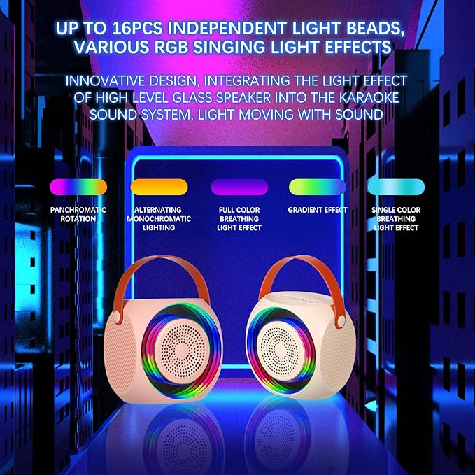 - An interesting sound box with RGB colorful lights, the lights are nice and bright but not dazzling, they are changing with music, and it has 6 lighting modes to switch from.