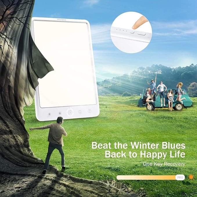 - UV free Light Therapy Lamp: Miroco Light Therapy Lamp has an intensity of 10,000 lux in a pure white color 6500K thats designed to imitate the daylight at noon. It fights winter blues and enhances your well-being, and filters out 99.9% of UV rays to protect your eyes.